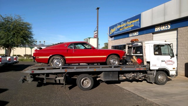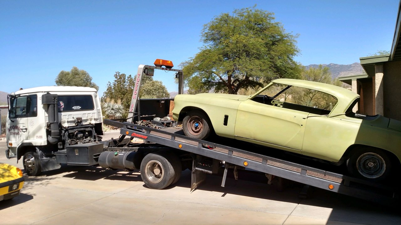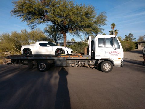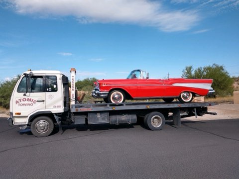 Not as unique as the stagecoach or sculpture, but still not something you see on the back of a tow truck in Tucson every day.